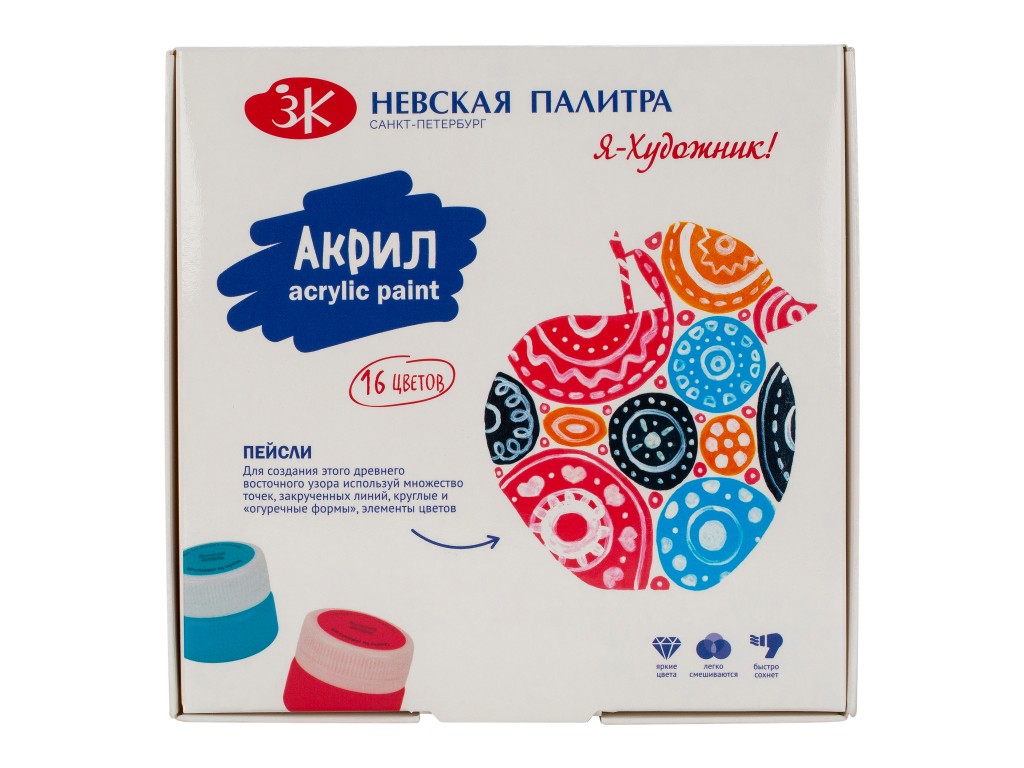 Акриловые глянцевые краски для детского творчества на основе водной акриловой дисперсии. Предназначены для росписи декоративных изделий из бумаги, картона, дерева, металла, кожи. Краски хорошо смешиваются, быстро высыхают. После высыхания приобретают глянцевый блеск, не смываются водой. После работы руки вымыть с мылом, кисти и инструменты промыть водой. Храните краски в плотно закрытой таре. Перед применением краску тщательно перемешать.Для детей старше 3 лет. Внимание! Дети до трех лет должны находиться под наблюдением взрослых.