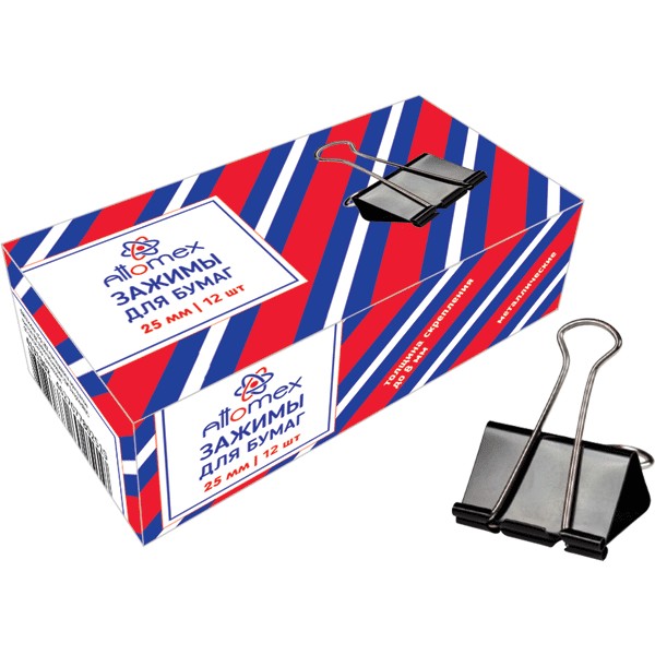 Зажим 25 мм Attomex черный металл 12шт/кор